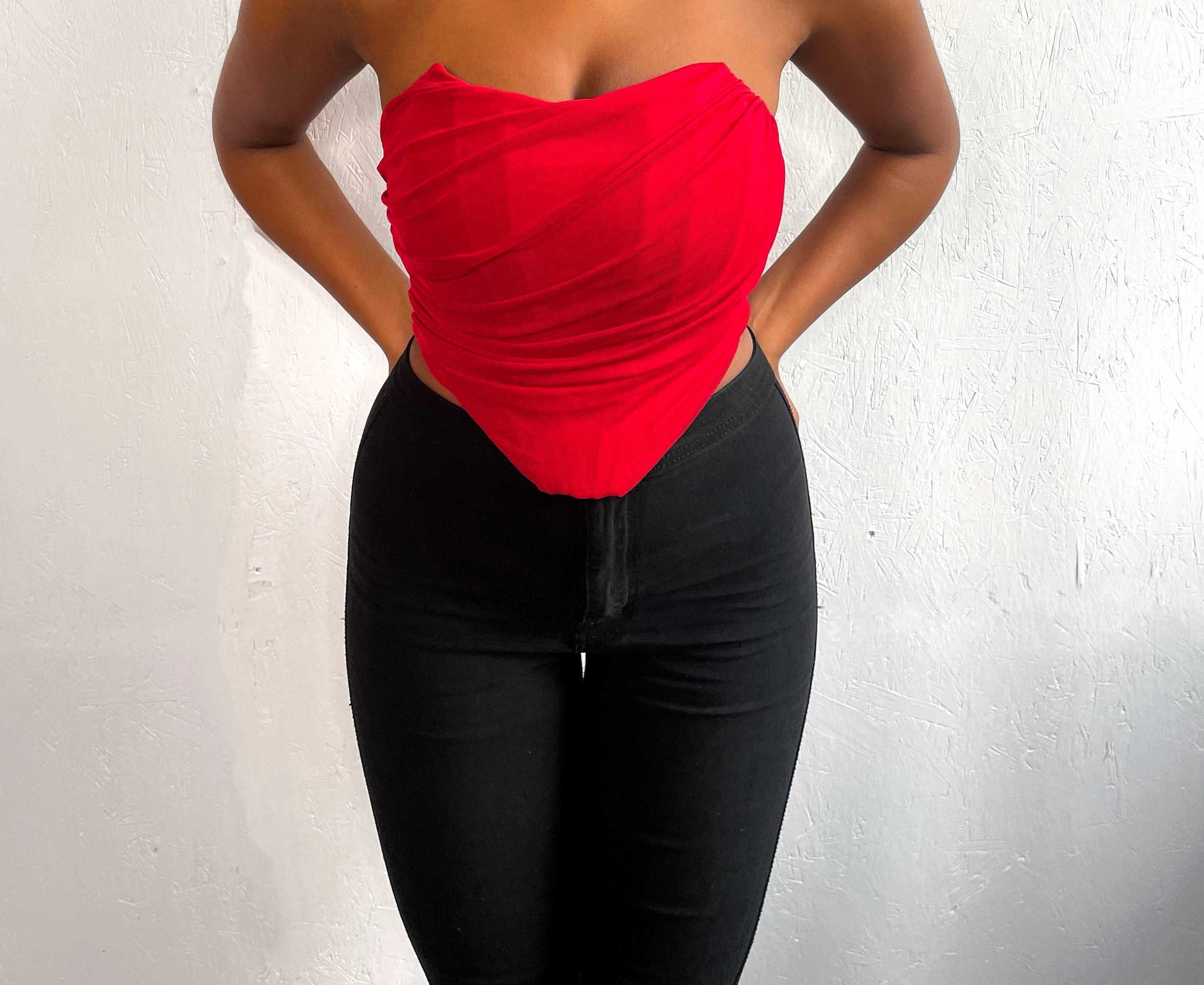 GIVE YOUR SPECIAL NIGHT OUT an update with our ribbed corset top. Featuring a closure zipper-back, midriff-baring, sweet semi-sheer mesh in many colors with a fishbone v neck to accentuate your beautiful neckline.