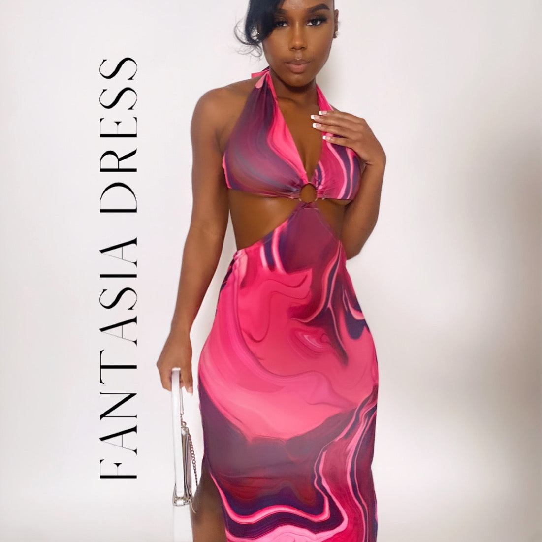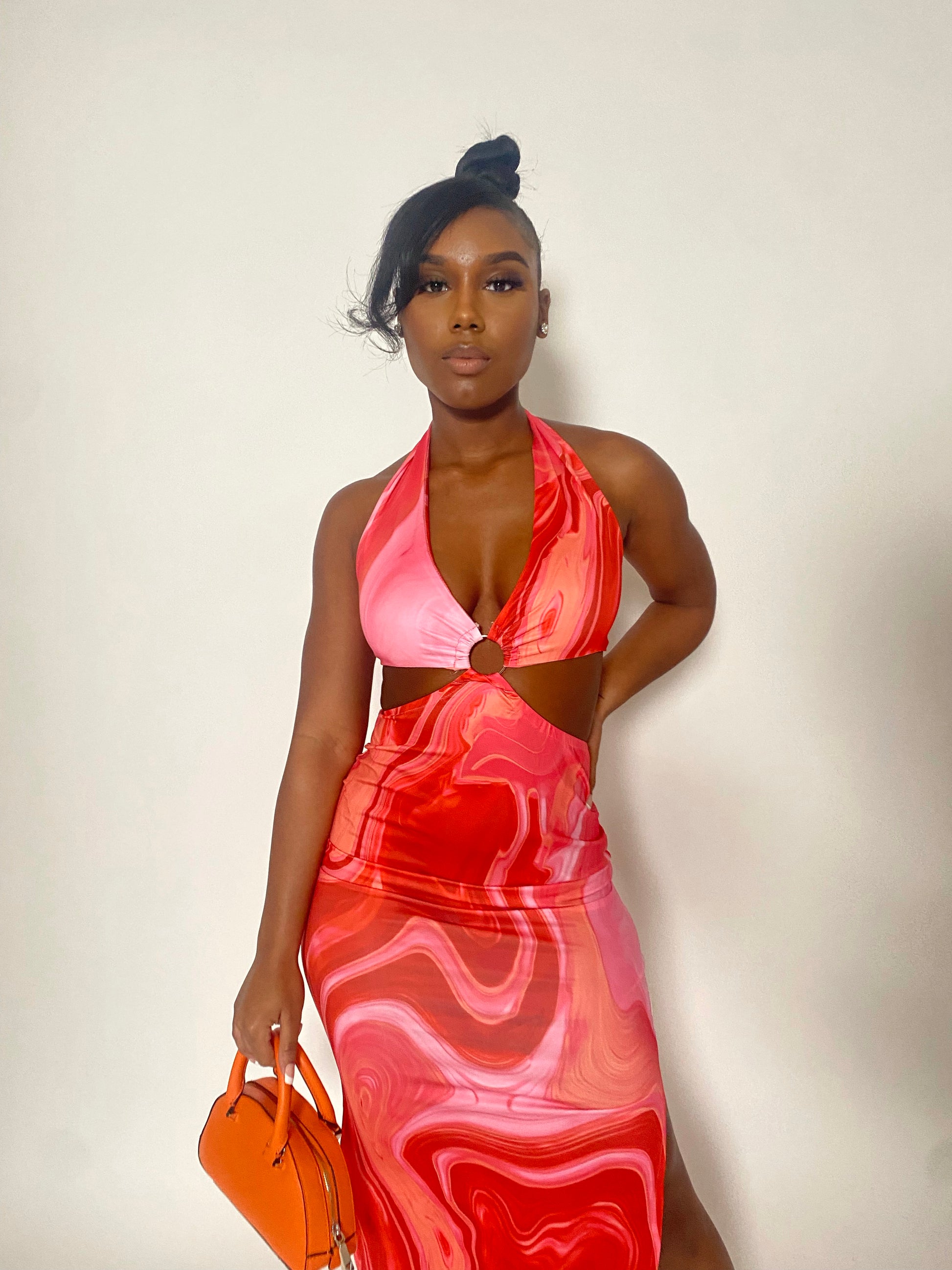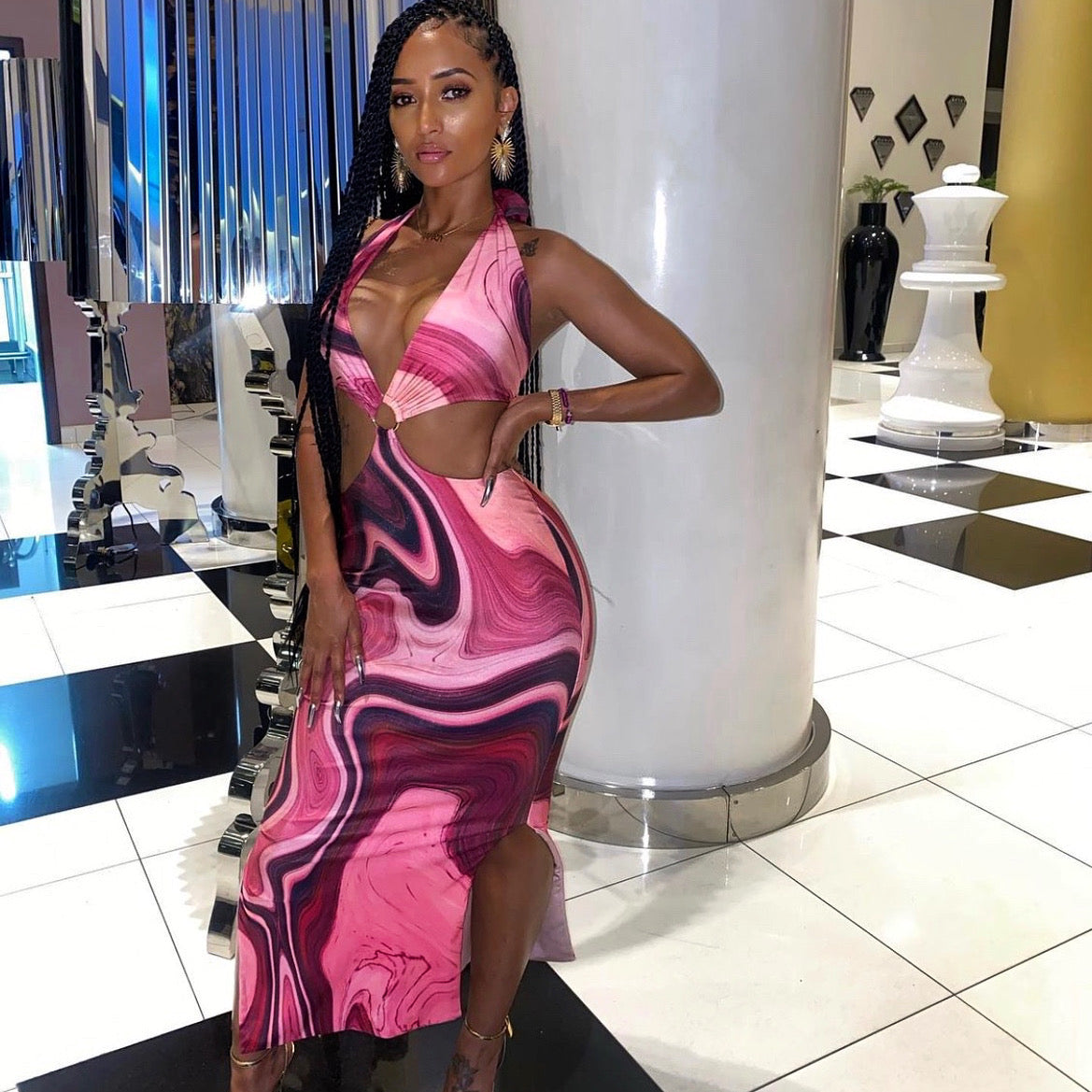 This cut-out dress sexy features a halter-tie top and long flowy dress, very tight and cute.